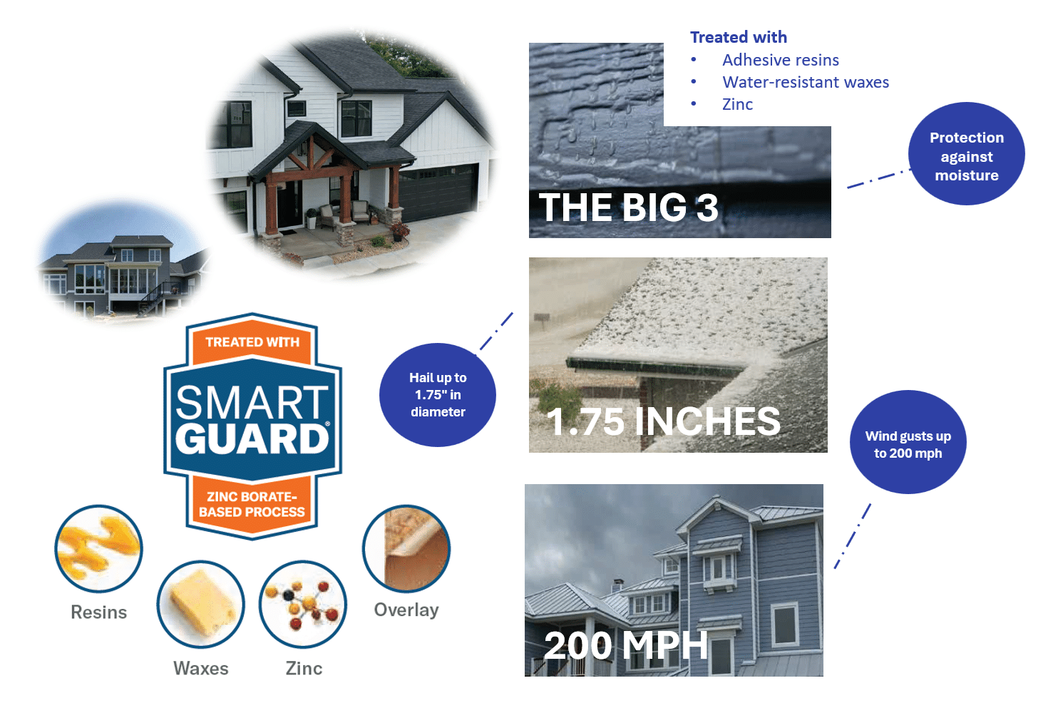 Features engineered wood strand technology and LP’s proprietary SmartGuard® process